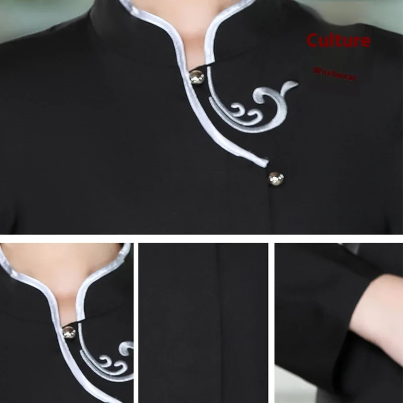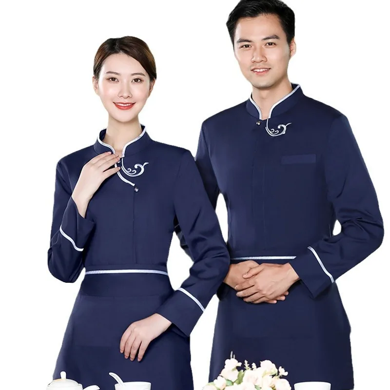 High-End Long Sleeve Women's Waitress Uniforms Spring Summer Workwear for Hotel Waitresses and Chinese Restaurant Hot Pot Staff